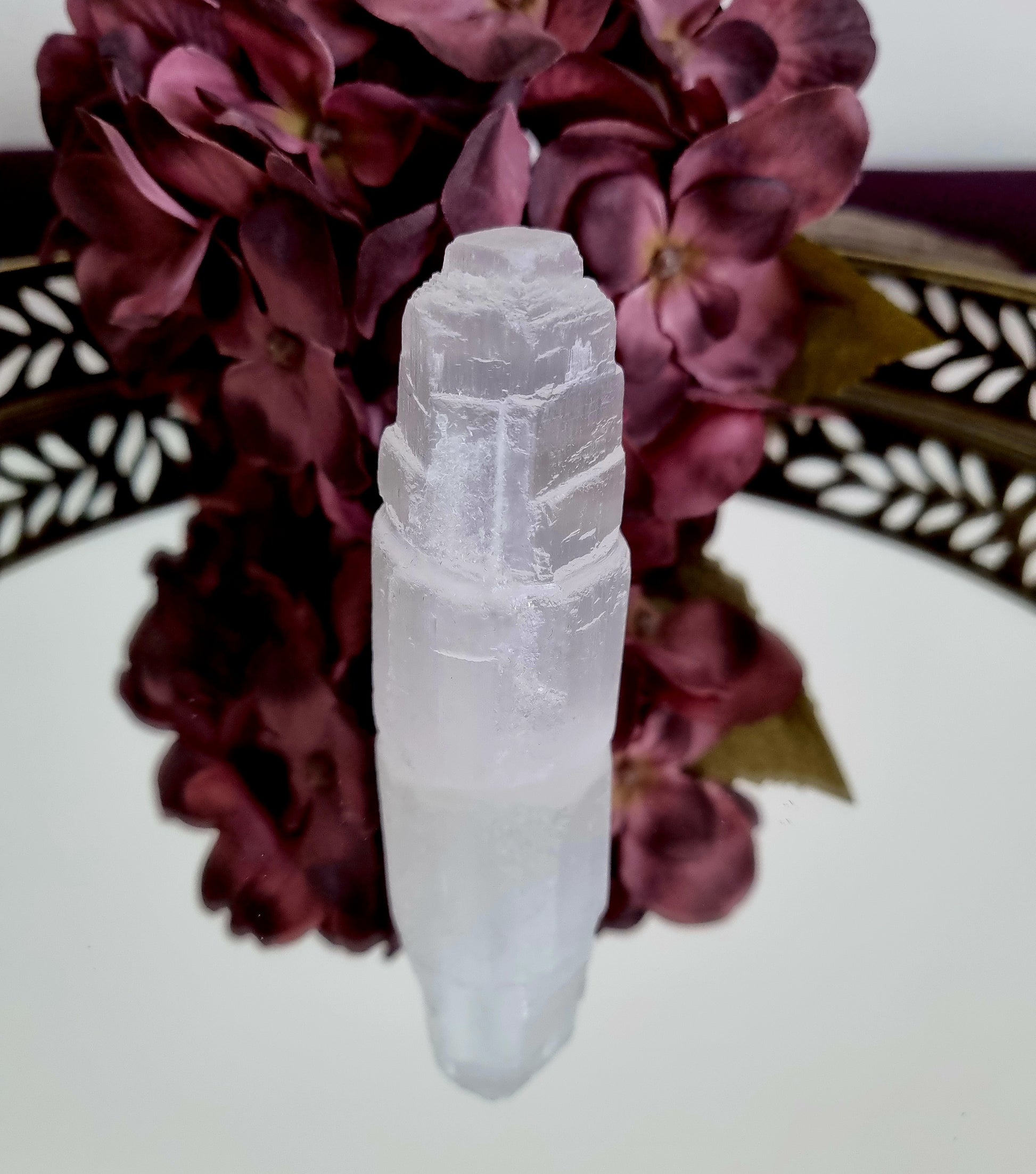 Torn av Selenit, en underbar kristall med sitt opala vita skimmer, bär en aura av ödmjukhet och renhet. Det genomskinliga eller opaka vita utseendet på selenit skapar en känsla av frid och ljus i varje kristall.